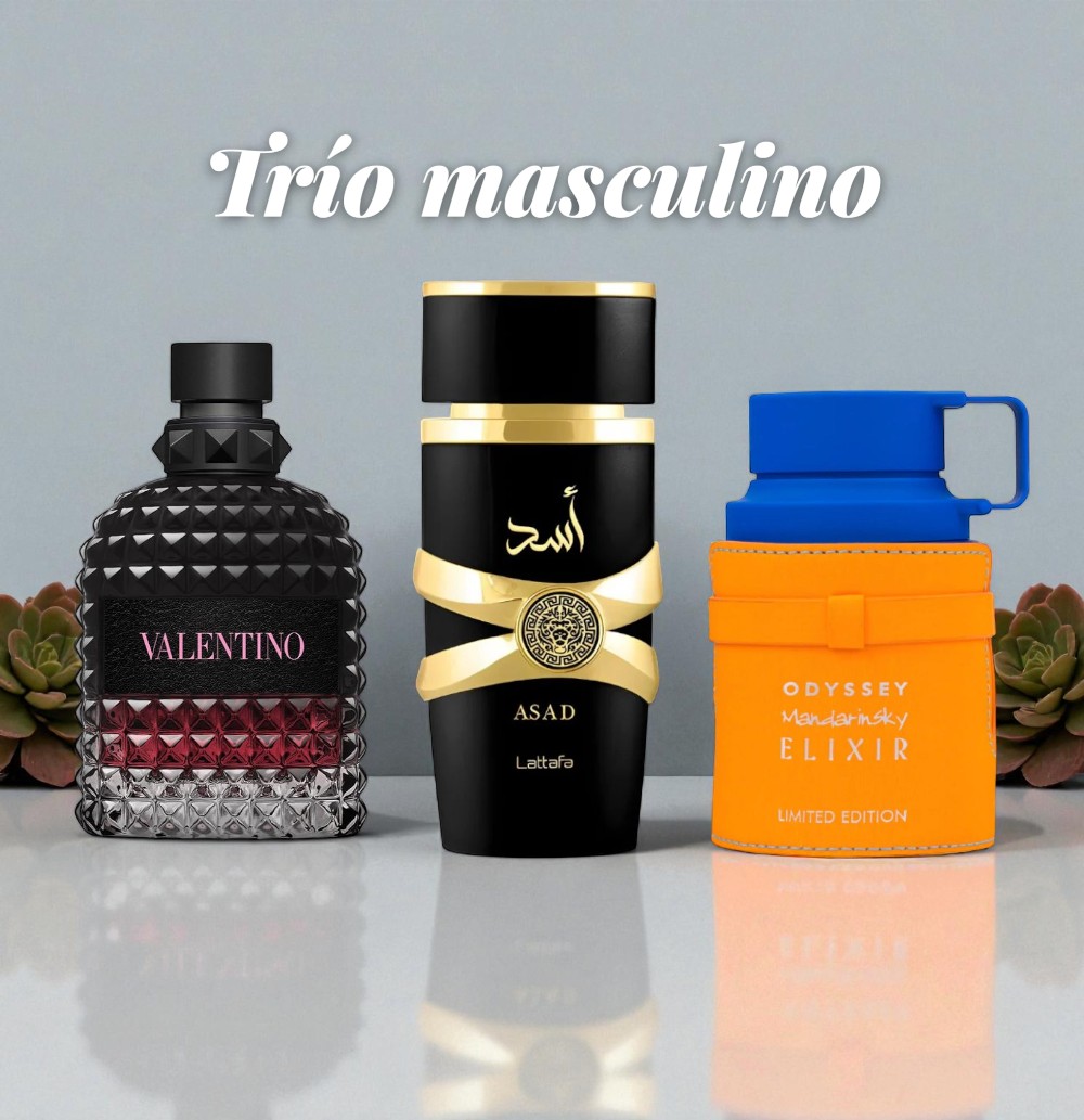 Imagina tener en tus manos tres perfumes distintos, cada uno diseñado para un momento diferente del día… y un regalo sorpresa que completa tu estilo con un toque de elegancia.